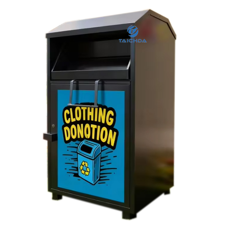 Ropa caja de donaciones  Desempeñan un papel importante en la promoción del reciclaje de recursos, la reducción de la contaminación ambiental y la prestación de asistencia social.