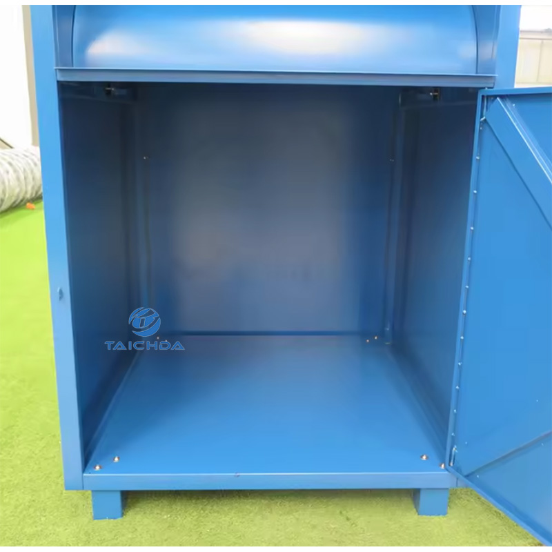 Dimensiones: 1100 mm de profundidad × 1100 mm de ancho × 1800 mm de alto. El contenedor de reciclaje de ropa de acero galvanizado es resistente a la oxidación y a la corrosión, y es adecuado para áreas públicas exteriores como comunidades, calles y centros comerciales.Número de producto: 0005-CDB-TCH