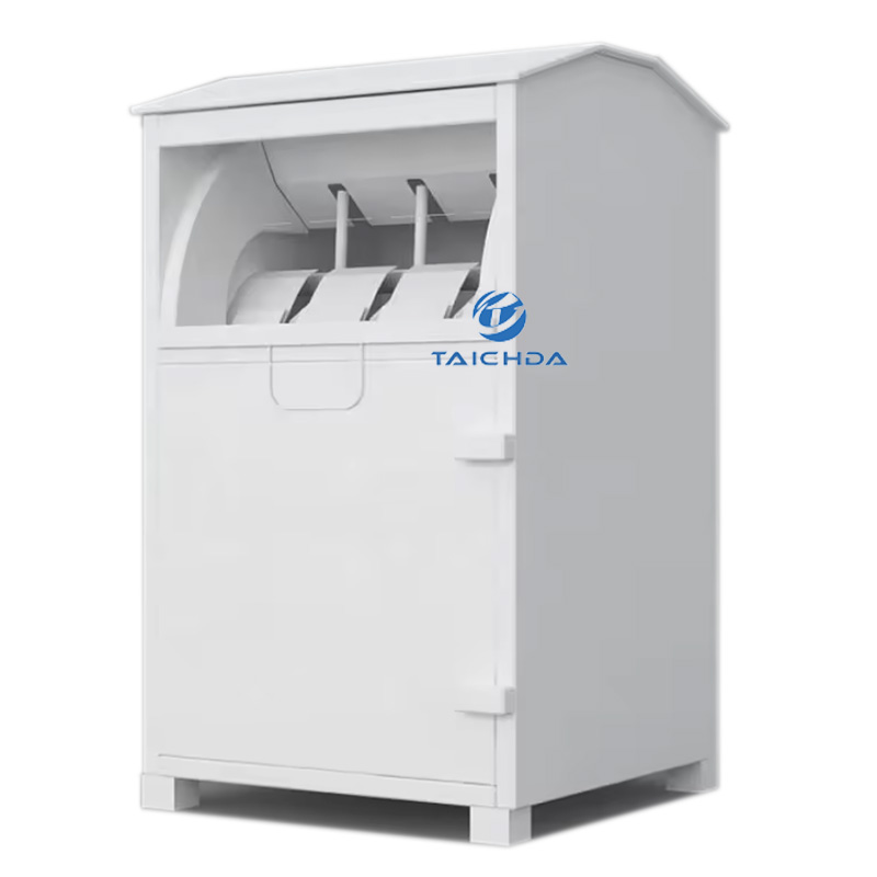 Dimensiones: 1100 mm de profundidad × 1100 mm de ancho × 1800 mm de alto. El contenedor de reciclaje de ropa de acero galvanizado es resistente a la oxidación y a la corrosión, y es adecuado para áreas públicas exteriores como comunidades, calles y centros comerciales.Número de producto: 0005-CDB-TCH