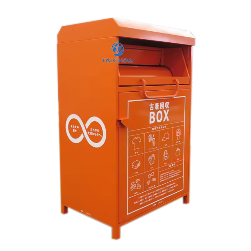 El contenedor integral de reciclaje de ropa de acero galvanizado es resistente a la oxidación y a la corrosión, y es adecuado para áreas públicas al aire libre como comunidades, calles y centros comerciales.
